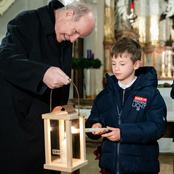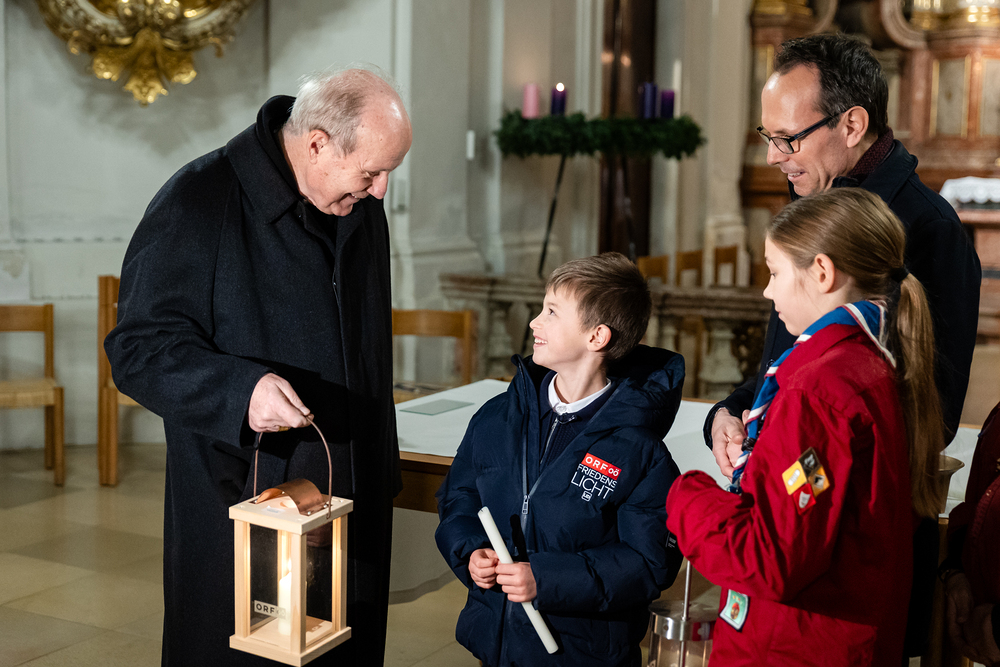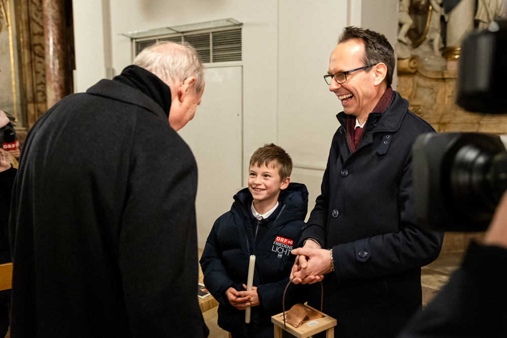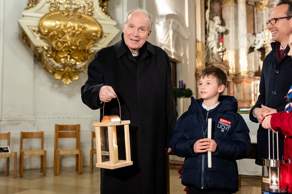 Im Rahmen der Vesper zum Adventempfang für Medienschaffende wurde das ORF-Friedenslicht am Donnerstag, den 12. Dezember 2024, an Christoph Kardinal Schönborn, den Erzbischof von Wien, übergeben. Der neunjährige Matthias Secklehner aus Gschwandt bei Gmunden überbrachte das Licht als Symbol des Friedens in die Kirche des Wiener Priesterseminars. Wir waren mit der Kamera dabei.