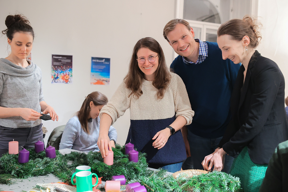 Adventkranzbinden mit StudentInnen der KHG