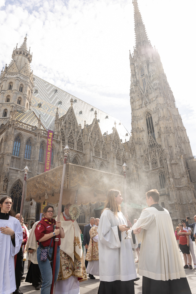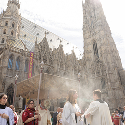 Großer Stadtumgang zu Fronleichnam mit Kardinal Schönborn